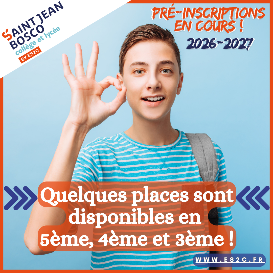 Les inscriptions au collège et lycée privé Saint Jean Bosco sont ouvertes à toutes les familles. Pour toute demande d’information ou pour engager une démarche d’inscription, nous vous invitons à contacter l’établissement.