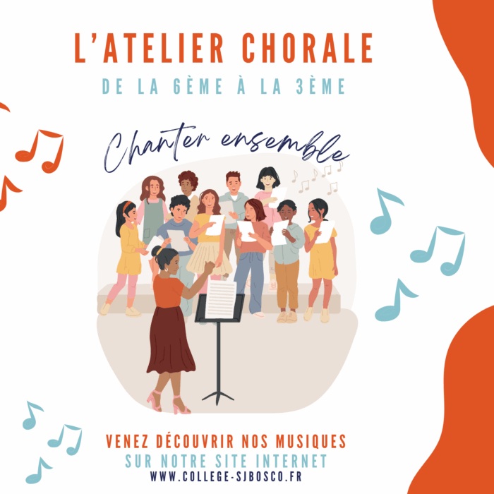 Depuis maintenant quatre ans, l’atelier chorale du collège Saint Jean Bosco fait vibrer les voix et les cœurs. Mis en place et animé avec énergie par Mme Gauthier, cet atelier rassemble chaque semaine,