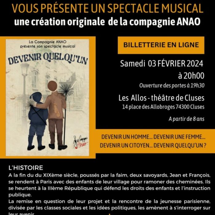 L’ES2C s’associe avec la Cie ANAO et vous convie le samedi 03 février 2024 à 20h au théâtre des Allobroges à Cluses à un spectacle musical. RESERVATIONS et informations détaillées