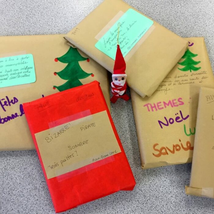 A la BCD du 16 au 19 décembre 2019, les élèves découvrent une sélection de livres emballés comme des cadeaux. Parmi ces livres, se trouvent des nouveautés, des classiques ou des